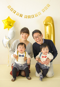 ご成長を追って、出張撮影させて頂いている双子の男の子が、1歳になりました。