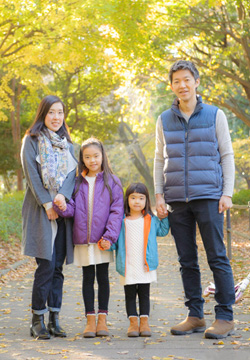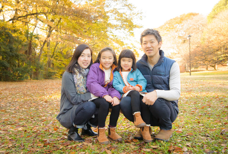 凛とした空気が広がる早朝の公園、 家族写真を撮影させて頂きました。