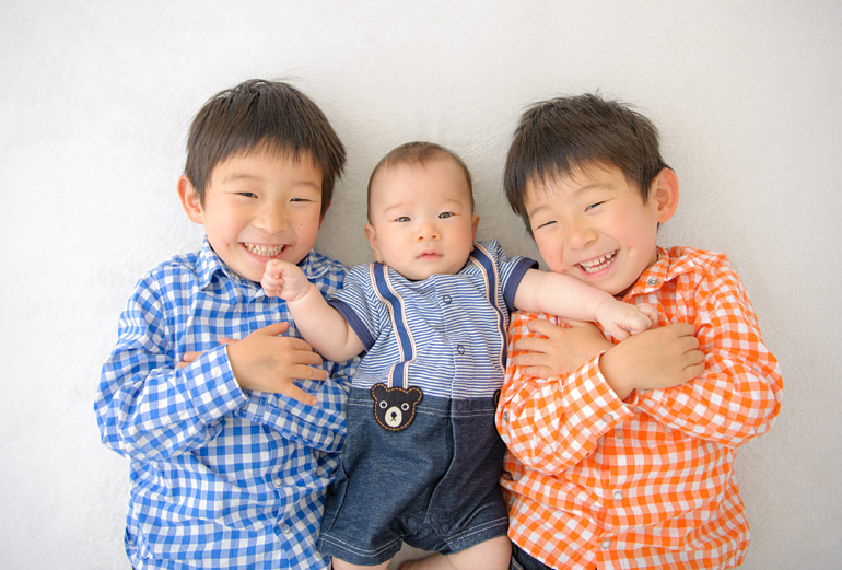 毎年撮影させて頂いている双子の男の子達、弟さんが生まれて3人兄弟になりました。
