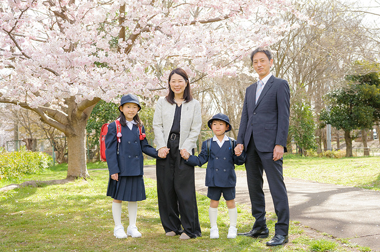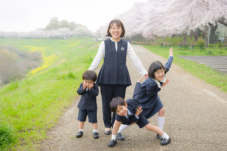 桜が満開になった朝、 ピカピカの1年生がスタジオに来てくれました。