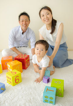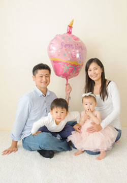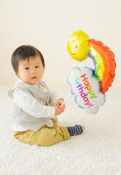 盛夏の頃にお宮参りした男の子、1歳のお誕生日記念にスタジオにきてくれました。 >>この撮影ブログを見る